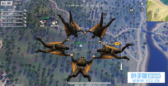 跳伞是由队长控制的,刚开始都是手拉手跳伞,快要打开降落伞的时候就会分散开来。这个模式一般都是5人一个队伍,但有时候也会有3人一个队的情况,根据当局人数分配的。在选择跳伞目的地的时候需要注意了,不要扎堆,因为我玩几局协同作战,发现三次都是出于混战状态,和很多个队伍进行作战。协同作战模式是在同一架运输机上,一局基本都是二十个队伍左右,在选择跳伞点上应该是会不同的,但我却发现很多队伍在选择跳伞点上想法是相似的,所以很容易出现大混战。