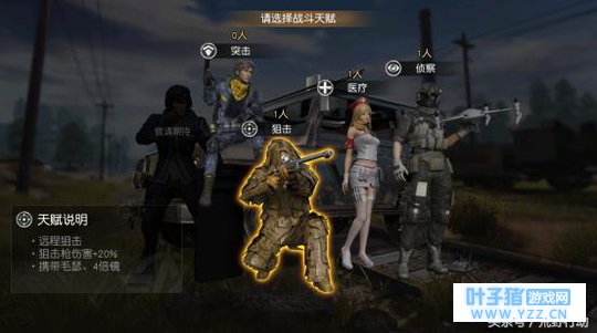当我们进入协同作战模式后,在出生岛等待战斗之前,我们可以选择战斗天赋,狙击这个天赋,落地携带毛瑟狙击枪跟4倍镜! 更恐怖的是,选择了狙击这个战斗天赋后,所有的狙击枪都增加20%的伤害! 可能小伙伴们不知道这个20%代表着什么,让补漏君跟大家说一说!如果小伙伴们碰巧落地捡到了一把M24狙击枪,那么你不需要去捡别的狙击枪了,因为M24在我们手里,一枪一个三级头也没问题!
