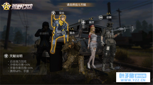 突击天赋近战实力超群,在使用冲锋枪时伤害提升30%,同时使用手雷时造成的伤害和范围也将得到30%的加成。在初始装备中,配有MP5冲锋枪和手雷,在游戏初期的遭遇战中能够为全队提供可靠的保护!