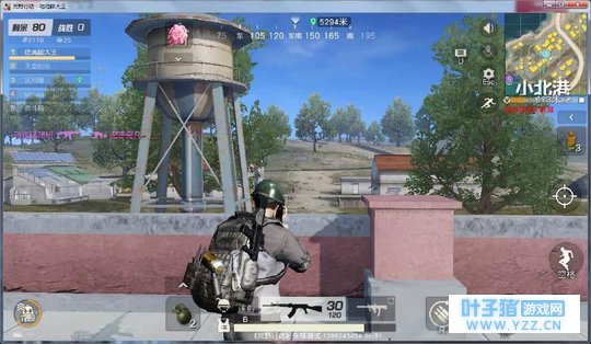 首先你要有一个高倍镜,至少4倍以上。找一个制高点,可以眺望远方的,请看上图远方有一定距离的房子会不直接显示在地图,这个时候开高倍镜就会有神奇的事情发生。