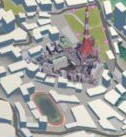 这次曝光的地图建筑的数量明显增多,且密集分布,各种都市元素的建筑都有;铁路、公园、工厂等。城南的这个铁塔一定是城市的标志性建筑。