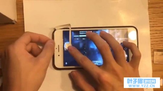 透明胶带将射击键与屏幕上侧固定粘好,形状大致雷同,如果效果不好的话自己再进行细节上的调整。做到这一步黑科技就完工了,下面就让我们来看看它的威力吧。