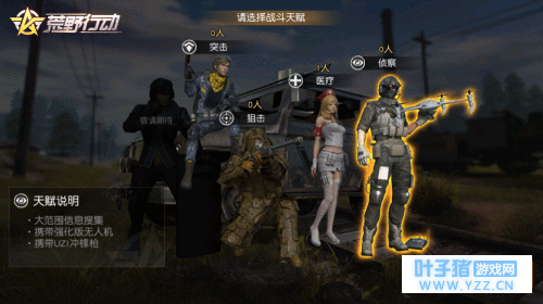 突击手是这一阵容的关键,因为医疗天赋作为唯一落地不带输出武器的天赋进攻能力不足,很容易落地就团灭。选择突击的玩家作为队伍里唯一的输出担当,一定要火力够猛,否则一旦该玩家被敌人击溃,那么全队都要兵败如山倒了! [演技至上阵容:三名狙击手+一名医疗兵+一名突击手] 如果碰巧你的队伍中有个“演技派”玩家,那么便可以组成传说中的戏精战队了!这一阵容由三名狙击手、一名医疗兵和一名突击手组成。三名狙击手负责布下围剿陷阱,突击手假装不敌对方诱敌深入,后方医疗兵随时准备支援,诠释出什么才叫真正的“荒野如戏,全靠演技”!