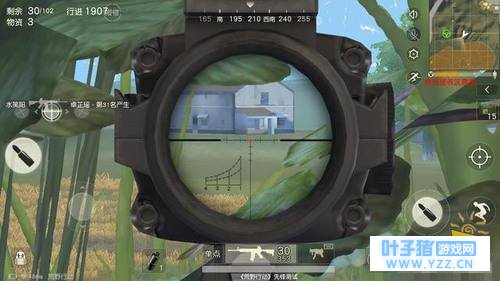 第二个教给大家的是当你趴在草丛中,如果看到人,不需要蹲着或者站着瞄准,可以根据草丛的缝隙趴着瞄准,这样更加隐蔽,更加安全。