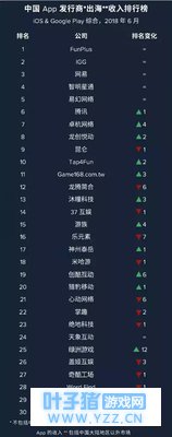 App Annie还照常公布了中国厂商的海外收入榜,Funplus、IGG和网易继续位列前三。