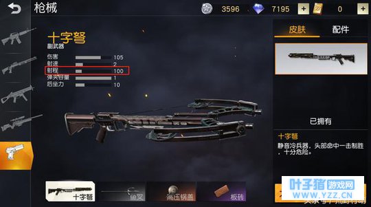 之前的十字弩射速为2,射程只有100,弹夹容量也只有1,而且只能安装红点瞄准镜,这使得它的操作难度变得非常大。远距离看不到人,近距离容错率低,十字弩根本没人敢用,不过后来更新让十字弩能够安装2倍镜或4倍镜,射程也增加了50%,达到了150,这才让十字弩的威力得到真正的发挥! 各位小伙伴,这4件武器当中,你最想要的是哪一件呢?