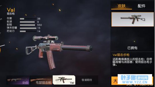 Val狙击步枪,远距离偷袭对手的狙击枪,自带四倍镜跟消声器!但你们以为它只能作为远距离偷袭对手的LYB专属枪械?不,Val的射击手感非常不错,射速也不低,在中近距离作战中,我们还能把它当做步枪使用! TOP 2 88式狙击枪