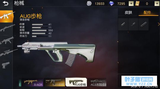 AUG是空投中唯一的步枪,光是这一个头衔就说明它并不是普通步枪!AUG的伤害、后坐力、射速都与老兵M4和S-ACR接近,但是它的初始弹夹容量就高达42,比部分枪械扩容之后还要高!自带2倍光学瞄准镜,开镜后坐力低,不需要任何配件就非常强!不过它只能够安装枪口一种配件,成长空间并不大,不过对于老兵来说已经足够! 95式轻机枪