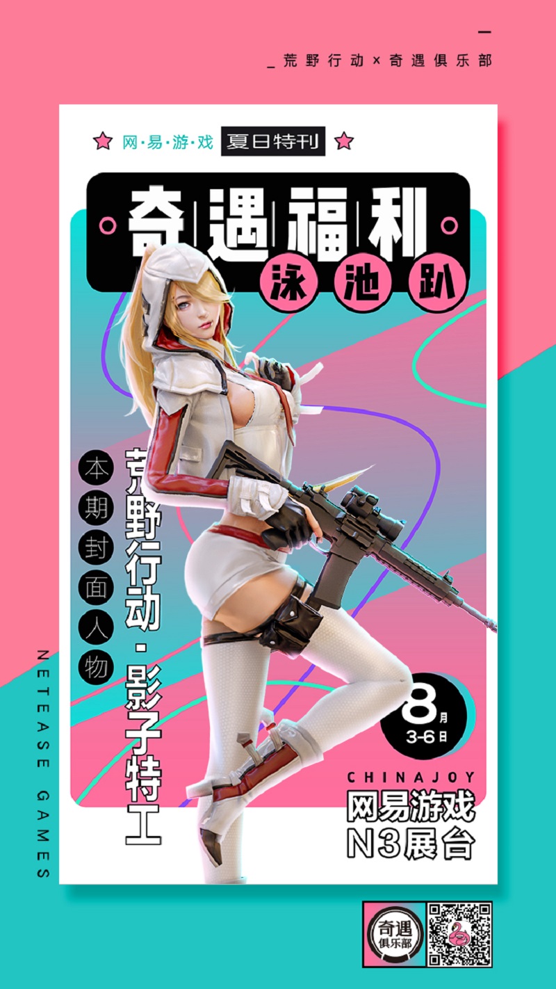 8月3日至8月6日,《荒野行动》将联合网易奇遇俱乐部在N3展馆内的网红波波池派发福利,5位漂亮的奇遇小姐姐和2位荒野coser等你来互动合影,与你一起点燃这个夏天的激情!