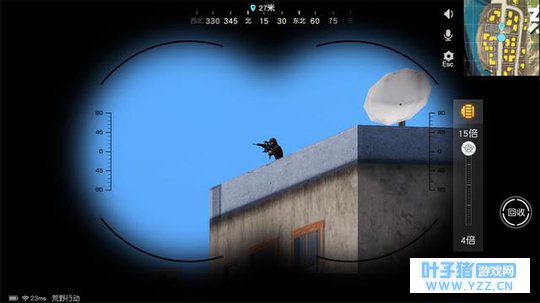 高倍望远镜具有15倍的放大功能并支持镜头变焦,操作使用和回收更为便捷,支持与枪械的快速切换。与正常倍镜相比,望远镜的视野更加宽广,视野移动更加迅速,并且望远镜还具有测距功能,能够更加清楚的观察敌方动向,为狙击手提供更加准确的情报信息。 突击手潇洒踹门