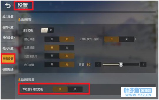 音乐播放可以在设置,声音设置里面调节该功能,只有驾驶员可以操作音乐的播放停止,无聊时可以放松一下,但是如果遭遇敌人的话,有可能影响判断。而且对外界的枪声有一定的影响。