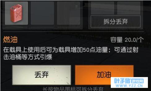 毒气弹爆炸后呈绿色烟雾散布范围很大,最多能够持续造成51点伤害,持续掉血类似毒区,51点的伤害也是终极决赛圈的伤害衰减。在决赛圈、攻楼等等情况下都可以制造人工的终极毒区。但是大家一定要注意,毒气弹的持续伤害不会再同区域同时间点内累计。 “人工轰炸区原料”——燃油