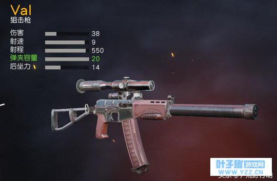 再让我们来看看Val,它不仅自带4倍镜,还自带消声器,落地就能化身伏地魔狙击对手!而且它射速和步枪非常接近,扩容之后还能有20的弹夹容量,还能把它当作步枪来使用! 无论是枪械属性还是枪械特性来看,Val其实都不错,并不输88式,但是在游戏中Val确实相对冷门。
