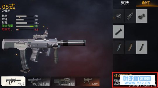 05式微声冲锋枪自带消声器,隐蔽性非常好,身为一把冲锋枪,弹夹容量却高达40!不仅如此,05式的后坐力也非常低,而红点瞄准镜极大程度地提高了射击准确性,这个组合简直就是指哪打哪! 如果一把枪只能带一个配件,这4个组合确实很强!各位小伙伴,你们是否也这样认为呢?
