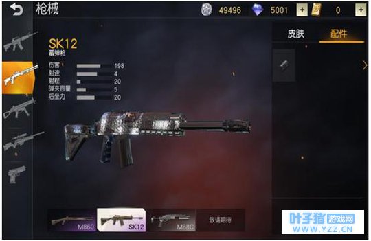 第三名:M88C霰弹枪这把枪作为荒野中伤害值最高的武器,实至名归,275点的伤害,任何人一枪就倒,通过射击一发后再填装弹药,可以获得武器3发的备弹,容错率稍有提高,但是也是很难操控的一把武器。