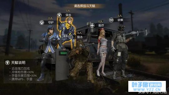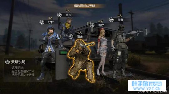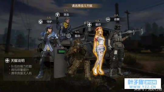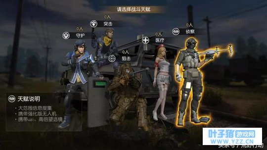选择医疗天赋的玩家作为团队治疗者,有着 更大的背包容量 和 超强力的治疗无人机 ,着让他们成为团队坚实的后盾。 团队职能: 医疗救助、后勤补给 样样行。 侦察天赋
