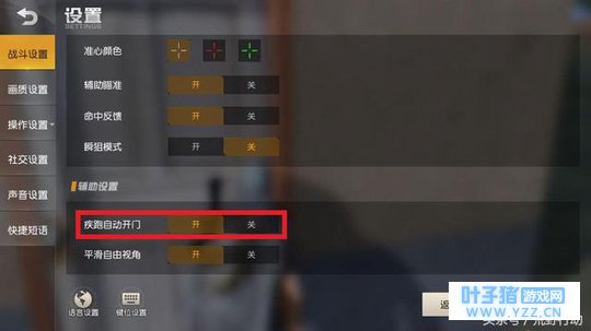 现在荒友们打开战斗设置 会发现新增了两个辅助设置开关 它们分别是 疾跑自动开门 与 平滑自由视角