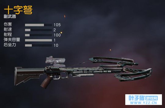 十字弩-致命属性换箭速度 十字弩归类为副武器的一种,但是在装备之后却占据着主武器的使用栏。十字弩的伤害很高,而且能够安装高倍镜,还自带消声器,是阴人的神器。但是在实战过程中,抛开它100的超短射程不说,想要在这么近的一个距离命中敌方,天时地利人和缺一不可,否则,十字弩超慢的换箭速度会让玩家尴尬至极。