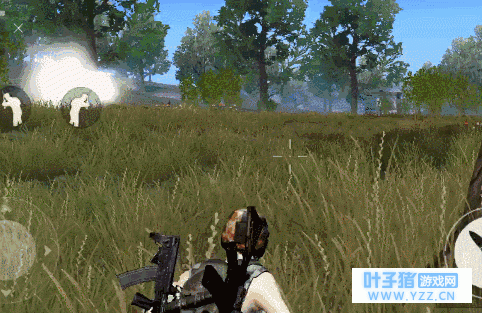 在 转移的途中 还可以通过转动视角, 观察对手 位置、人数,在合适时机反败为胜。同样地,如果在信号圈边受到对手的拦截攻击,或者想要攻击处于高地的对手时,也可以尝试这一招 声东击西 实战中,要使出“一烟障目”需要我们的烟雾弹库存充足,但很多时候可能包里只有 一两个 烟了,怎么办!不要慌!拉不起“白墙”,我们可以制造“白色炸弹”。