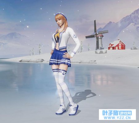 第四套:荒野行动制服诱惑之水手装,蓝白搭配非常轻松惬意的一套制服,胳膊和袜子处的船锚标志也是非常的亮眼。