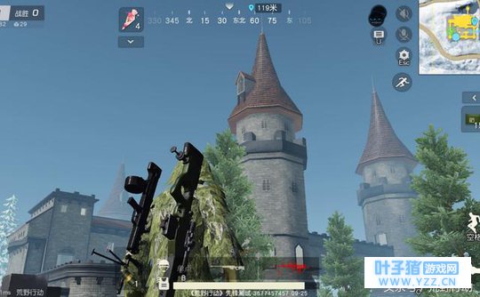 古堡,因为位置偏远和地形复杂的原因,荒友们对古堡的熟悉程度,总是不及其他的高级资源点。但在“梦想追逐战”中,荒友们可以纵观整个古堡的面貌。 在信号区刷到古堡时,荒友可以落在碉楼上。和其他建筑不同,古堡碉楼的天台是没有楼梯的,上去的办法只有跳伞一个。而四周叠起的墙体,就是最好的天然掩体。墙体中间的空隙,也足以让荒友的火力肆意倾泻。 雷达