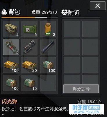 闪光弹 是 投掷武器 家族中的一员,投掷后会在数秒内产生 刺眼强光 ,使对手暂时陷入 失明状态 。 但由于有了烟雾弹、手榴弹和毒气弹的存在,加上闪光弹 占的背包容量 比其他几种投掷弹要 大 ,导致闪光弹的地位显得有点尴尬,成为了冷门武器。