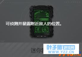 单人模式不同于组队模式,除了自己之外都是敌人,生存下来并且尽可能搜集需要的装备是首要目标。因此,跳伞的地方我们首选离航线较远,或者晚一点跳伞,毕竟生存下来才有进决赛圈的可能,当然这是对于大部分新手或者刚枪技术一般的而言,如果你是刚枪大神不怂就是干的类型可无视~~ 二、装备搜集 小编推荐的装备有以下这些,大家可以参考下 1、迷你雷达(制造单向透明的战场有没有) 在大家的等级都是比较低的中前期作用很大(后期受响尾蛇芯片、斥候尖兵克制),因为它可准确提示附近敌人具体位置,让你有的放矢,当然唯一的缺点就是一次性用品,所以尽可能的搜集它有多少拿多少,毕竟这是一个可以让你在察觉到危险或者受攻击的时候快速找到敌人反击刚枪神器