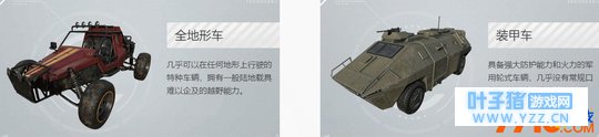6、载具 单人作战时,随身的载具必不可少,需要它来快速转移阵地以及搜集装备,优先原则是:装甲车>直升机>越野车>其他汽车,装甲车防御无敌,当然需要空投获得比较困难;直升机在跳伞的时候可以跳附近,快速转移非常好用,飞到最高的时候相比地上开车裸奔安全,单人模式下很难被打下来;全地形车适应地形好速度也不错