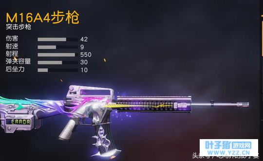 作为老牌步枪,它有着步枪中最为均衡的属性。而且最近增加了可以装备战术握把的配件槽,使得它又一次成为了步枪中的大热门。顺滑的手感加上优秀的属性,M4A1绝对是你吃鸡的首选! 爆发之王M16A4
