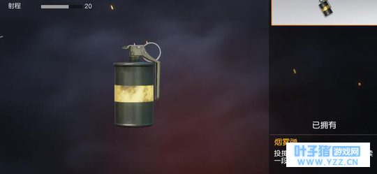 这种投掷武器,它的作用就是短时间内敌人会被致盲,失去所要攻击的目标,给我方人员创造进攻的机会,房区和野地进攻时应用较多,但是有很多的荒野伙伴们,对它的效果持一定的怀疑态度,致使它的出镜率较低。 辅助类的投掷武器之二:掩护神器烟雾弹