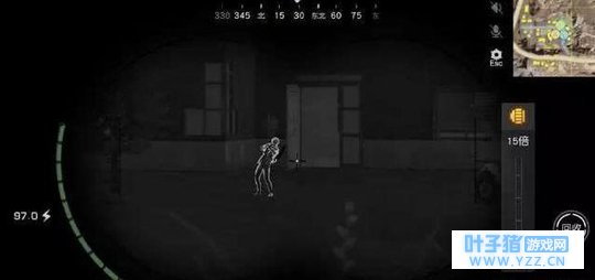 3. 红外望远镜 红外望远镜是黑夜模式中的专属道具,这个道具可就厉害了,倍距可以在4~15倍之间调节,在夜晚使用时,镜中物体会呈现灰色调,当有人出现时会反光,也是夜晚作战的利器!不过红外望远镜有电量限制。