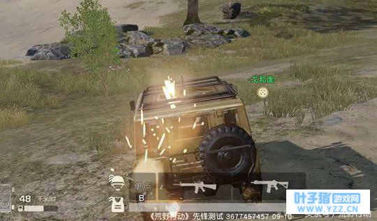 但如果荒友们拥有 视野优势, 可以尝试打药硬扛信号衰减的伤害 等待对手露出破绽。 这种获胜方式需要足够的 冷静和耐心! 心脏强大的荒友可以一试!其实上面的玩法,就是我们常说的 “伏地魔” 过早暴露的我们,常常会被藏在暗处的他们收下盒子,然而就算是一个强大的“伏地魔”也会对下面的骚操作有所惧怕! ↓↓↓ 03 无情碾压载具进圈