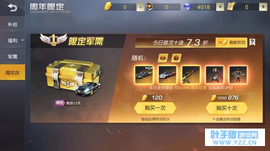 活动期间,周年限定军需开启,每日金色物品出现概率大幅提升,每日首次十连抽可免费抽取神秘折扣,最低享受5折优惠,刷新折扣必定低于之前折扣,单抽不享受折扣优惠。周年庆期间,充值到达指定金额,就可赢取多重超值奖励。