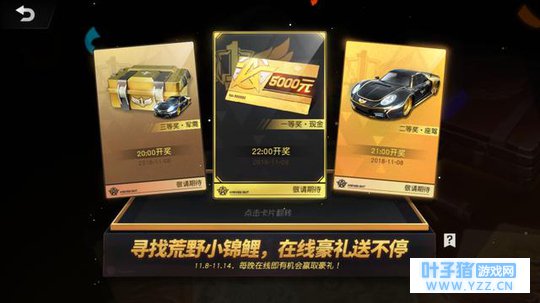 11月8日至14日,每晚20点、21点、22点将进行三次抽奖,从在线玩家中随机抽取获奖者,保持在线即可自动参与抽奖。一等奖(5名)现金5000元,二等奖(10名)初心ONE-周年纪念版座驾,三等奖(5000名)周年限定宝箱。寻找荒野小锦鲤,你会是那个和《荒野行动》结缘的幸运儿吗?