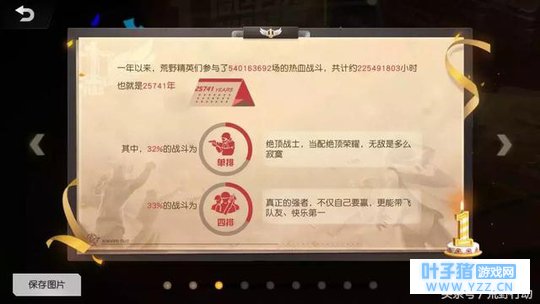 相信各位机智的荒友,在完成更新后都看到了这个界面,在这里荒弟偷偷告诉大家,这上面每一处发光的小物件,都可以点击跳转到 我们的各种惊喜福利活动哦~ 周年战报 荒野行动上线一周年,相信各位荒友都在游戏里有过各种各样的体验。