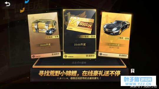 每天邀请的朋友越多,奖励也就越丰富,达到一定邀请人次后,还可以获得额外奖励哦! 荒弟os:这样的好事,一般人我才不告诉TA 荒野锦鲤 近期荒弟总被各种锦鲤转发活动刷屏,不知道幸运值爆满的荒友们有没有中奖的呢?如果之前没有中,也没关系!我们荒野行动将在11月8日至11月14日每晚20:00、21:00、22:00进行抽奖哦!一等奖可是5000元的现金大红包噢!