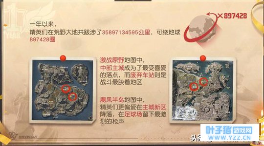 在这一年中,玩家们跑图共跑了近359亿公里,可以绕地球89万圈了!而最受欢迎的就是老地图中的主城和车站,新地图中的主城和足球场了!