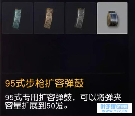 95式步枪 装配了步枪补偿器、战术护木和95式步枪扩容弹鼓后,95式的弹夹容量由30激增到了50,后坐力更是大幅降低到了6.5,在步枪中仅次于满配状态下的M27。