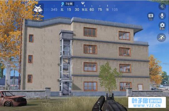 大房间内三面都是面积较大的窗户,我们在里面容易被外面的对手发现。因此,我们不宜在大房间内久留,搜集完物资以后就赶紧撤吧! 摸清了电梯楼的结构以后 下面该告诉大家 如何因地制宜地作战啦! 04 战术点睛 登高望远