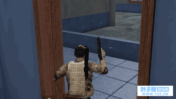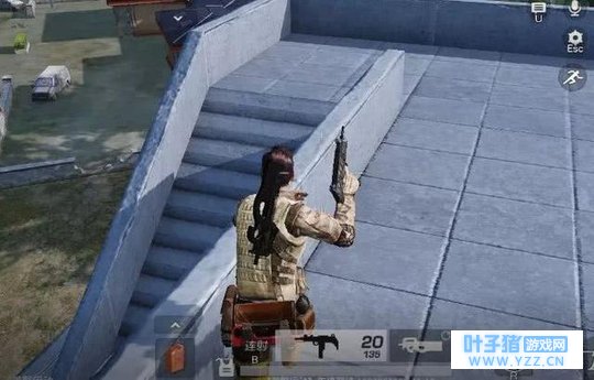 但在天台上时,我们要多加留意四楼通往天台的楼梯口,以防对手突袭。 拐角蹲守