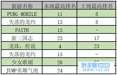 App Store 游戏畅销榜新游入围变化 其中,《PUBG MOBILE》继上周进入日本 App Store 游戏畅销榜 Top 10 后,本周继续表现出良好的收入增长趋势,一周内有 5 天达到畅销榜 Top 30。 另外,《失落的龙约》同样有5天进入到畅销榜 Top 30,继续为任天堂的手游收入贡献力量。
