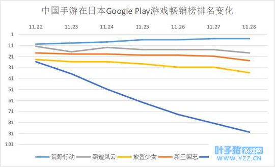 值得注意的是,世嘉在 11 月 27 日上线了梦幻之星系列新作《IDOLA 梦幻之星传说》,为横版RPG游戏。玩家可以从秩序和混沌两个阵营选择其一参与战斗,同时玩家还可以在游戏中扮演boss角色,和游戏中的玩家进行对战。这款游戏在上线当日即登顶日本 App Store 游戏免费榜。 6waves 也在同日上线了一款名为《对战!奇迹炸弹》的游戏,包含 3 人组队的 PVP 模式。 《荒野行动》连续6天保持日本 App Store 畅销榜首位 本周共有 13 款海外产品进入日本 App Store 游戏畅销榜 Top 30,相比上周减少4款。海外产品的日入榜数量则在 7 款至 9 款之间波动。