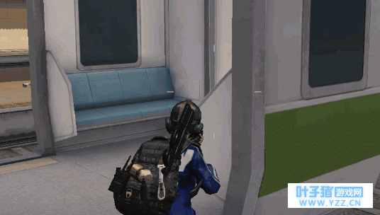 由于架空层的柱子比较细窄,我们呆在柱子后不动的话,很容易被对手击中。 天命妹建议大家可以踩小碎步,在一侧开枪后,立刻换到另一侧继续开枪。在换弹或者被击中时,再缩回柱子后,稍作调整再继续交战。 列车车厢 老车站里的列车车厢,也是一个适合掩体刚枪的地方。我们可以趴在车厢的座位旁,枪口朝向车门,等待要上车的“乘客” 但我们也要不时转动视角观察其他车门的情况,查看是否有其他对手上车。