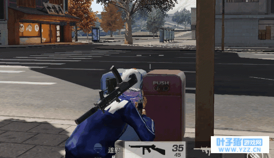 除此之外,我们还应注意在我们身后的其他门后有无对手,要时刻留意小地图上的脚印和我们听到的脚步声。 除了上面这些较大型的掩体外,在城市中还有许多随处可见的小型掩体,不知道你发现了没有呢? 02 小型掩体 贩卖机 城市里随处可见的贩卖机,也能作为我们在巷战中的掩体