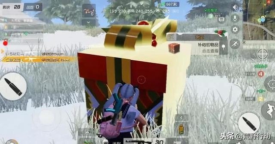 玩家—糯米肉丸儿 正在用倍镜搜寻对手 突然一个神秘礼盒映入眼帘 这莫非是从天而降的圣诞礼物?