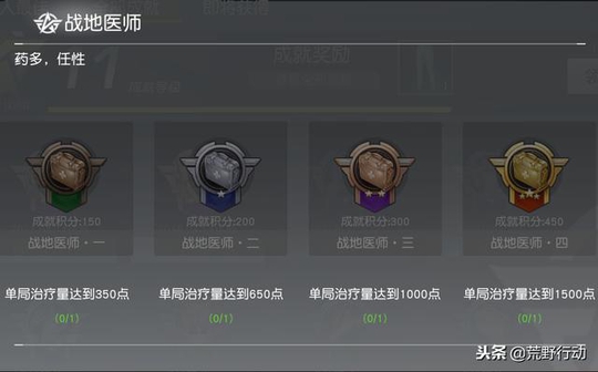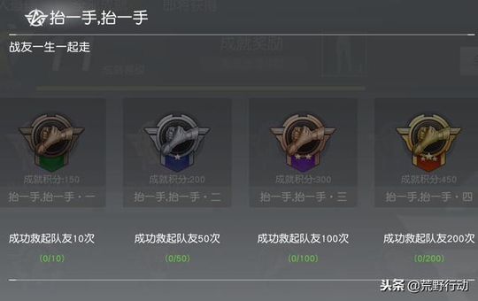 第三个成就有点复杂,因为你必须成功救起队友10、50、100、200次,如果自己太弱就没有机会救援队友,如果队友太强也不需要救援,所以想要短时间内完成该成就最好就是带萌新! 战地医师