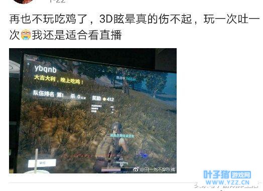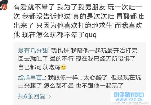 他们就是3D眩晕患者。 对于吃鸡这类第一视角转来转去的游戏,有些人真的是像晕车一样不能拯救。也有朋友玩多了就不会吐了,但是大部分朋友都过不去那个眩晕的过程。哎对吃鸡可以说是又爱又恨。在这其中,可以找到一些感人的故事。 一切都是因为爱——因为喜欢啊