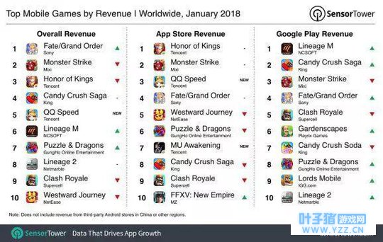 腾讯游戏安全中心发文,正式推出《绝地求生全军出击游戏安全处罚规则》,明确游戏内违规行为及处罚力度。游戏对外挂采取“零容忍”态度,只要发现作弊一定严惩,不接受任何渠道的解封申请(包含心悦会员等)。此外,腾讯还将定时公示名单,即使是借号或充值上万的大R,作弊也都不会解封。 2、亚洲手游称霸全球手游营收榜 随着大众时间碎片化的现象越来越严重,手游凭借随处可玩的游戏模式越来越受到玩家的喜爱。今日市场研究机构Sensor Towe发布数据表示,在全球手游市场中,亚洲游戏成为了全球手机游戏营收的主力军。