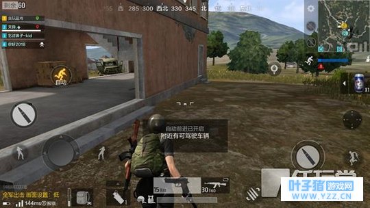 《绝地求生:全军出击》 虽然说吃鸡已经风靡游戏圈好一段时间,会来玩的必然也都是些老司机,但也绝对不乏新手,所以新手教程这个功能其实还是非常必要的。“刺激战场”在这点上就考虑得比较周全,玩家可以随时选择是否进入新手教学,而“全军出击”虽然没有新手功能,但是游戏内指引功能做得比较贴心。玩家在跑图的时候如果附近有可使用车辆会自动出现提醒,并且屏幕上也会标示出安全区的方向,玩家不用特地点开地图也能确定安全方位。