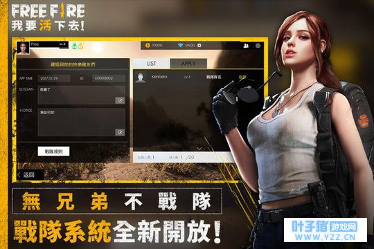 《Free Fire -我要活下去》是一款大逃杀类型的荒岛生存射击游戏,主打每局50人的快节奏激战,玩家可在10分钟的激战中选择躲藏还是勇敢向前,决定自己的生存之道。游戏内建小队语音系统,支援双人和四人模式,能与众多好友一起组队求生。